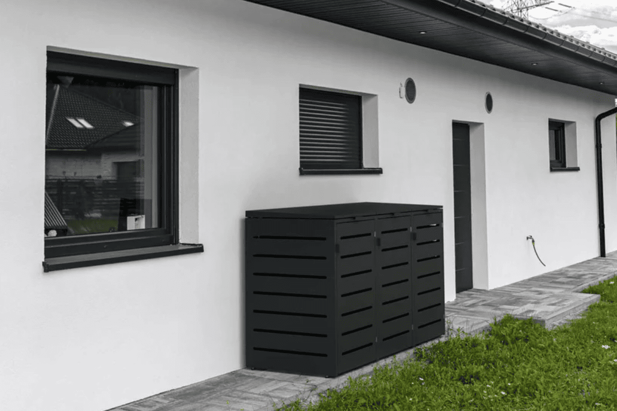 Denken Sie außerdem an Belüftung – besonders bei Bioabfall. Lamellen, Lüftungsschlitze oder eine kleine Bodenfreiheit helfen, Feuchtigkeit und Gerüche zu reduzieren. Wenn möglich: Halten Sie etwas Abstand zu Wänden und Hecken, damit Luft zirkulieren kann und Sie die Box von außen reinigen können.