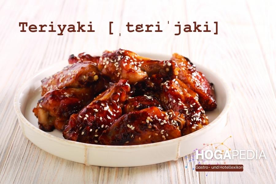 Teriyaki [ˌtɛriˈjaki] (照り焼き) ist eine japanische Zubereitungsart, bei der Fleisch, Fisch oder Gemüse in einer speziellen Marinade aus Sojasauce (醤油, shoyu), Mirin (味醂, mirin), einem süßen Reiswein, und Zucker (砂糖, sato) mariniert und anschließend gegrillt, gebraten oder gebacken wird. Der Begriff setzt sich aus den japanischen Wörtern teri (照り), was „Glanz“ bedeutet, und yaki (焼き), was „grillen“ oder „braten“ bedeutet, zusammen. Diese Begriffe beschreiben sowohl die Zubereitungstechnik als auch die süßlich-würzige Sauce, die den Zutaten beim Garen einen charakteristischen, glänzenden Überzug verleiht. Diese Speise ist in Japan und weltweit ein beliebter Geschmacksträger und wird häufig als Marinade oder Sauce zu diversen Gerichten verwendet.