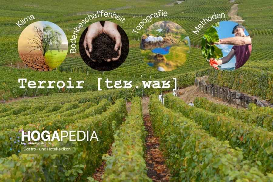 Terroir [tɛʁ.waʁ] ist ein französischer Begriff, der die Kombination von Klima, Bodenbeschaffenheit, Topografie und traditionellen Anbaumethoden beschreibt, die zusammen die einzigartigen Eigenschaften eines landwirtschaftlichen Produkts prägen. Der Begriff wird vor allem in Bezug auf Wein verwendet, ist jedoch auch bei Kaffee, Tee, Olivenöl und anderen regionalen Lebensmitteln von Bedeutung. Es beeinflusst den Geschmack, das Aroma und die Textur eines Produkts und verleiht ihm seinen unverwechselbaren Charakter.