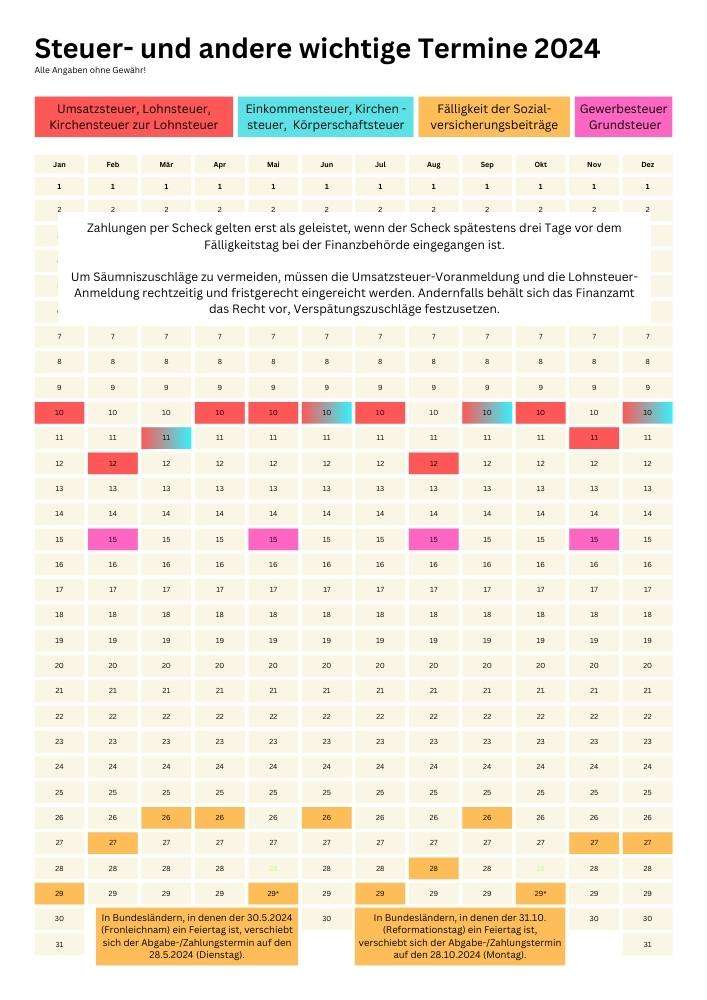 Wir haben Ihnen hierzu ein kostenloses PDF mit den Steuerterminen 2024 zum Download vorbereitet.